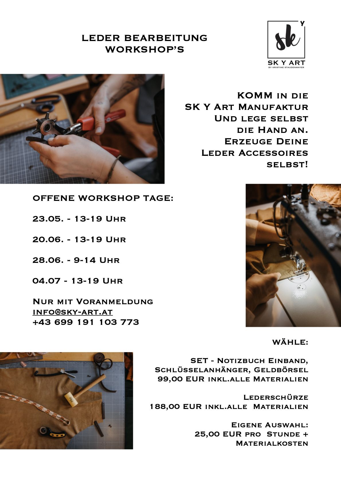 Die Workshops sind ein Highlight für die, die Kunst der Lederbearbeitung erleben möchten. In einer inspirierenden Umgebung können Erwachsene und Kinder ihre kreativen Projekte umsetzen und wertvolle Fähigkeiten entwickeln. Dabei geht es nicht nur um Kreativität, sondern auch um Gemeinschaft und mentale Gesundheit - ideal für Feiern und Team's.
